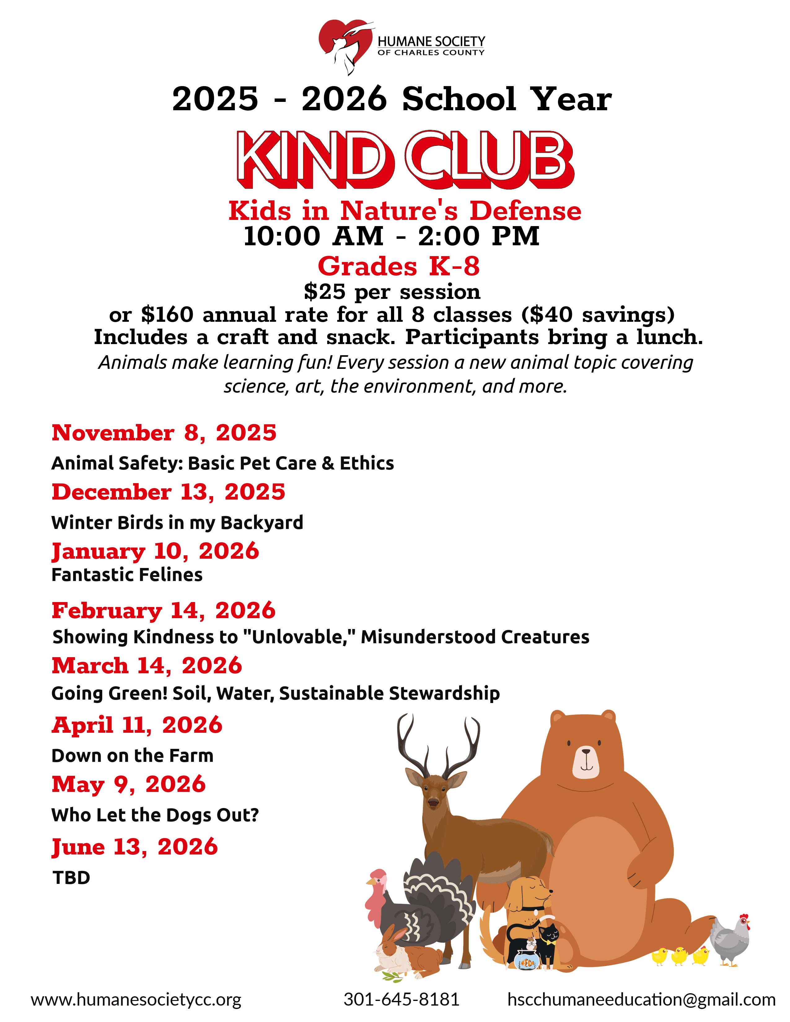 - Large-Family discount available. Please contact hscchumaneeducation@gmail.com for information on how to receive your discount