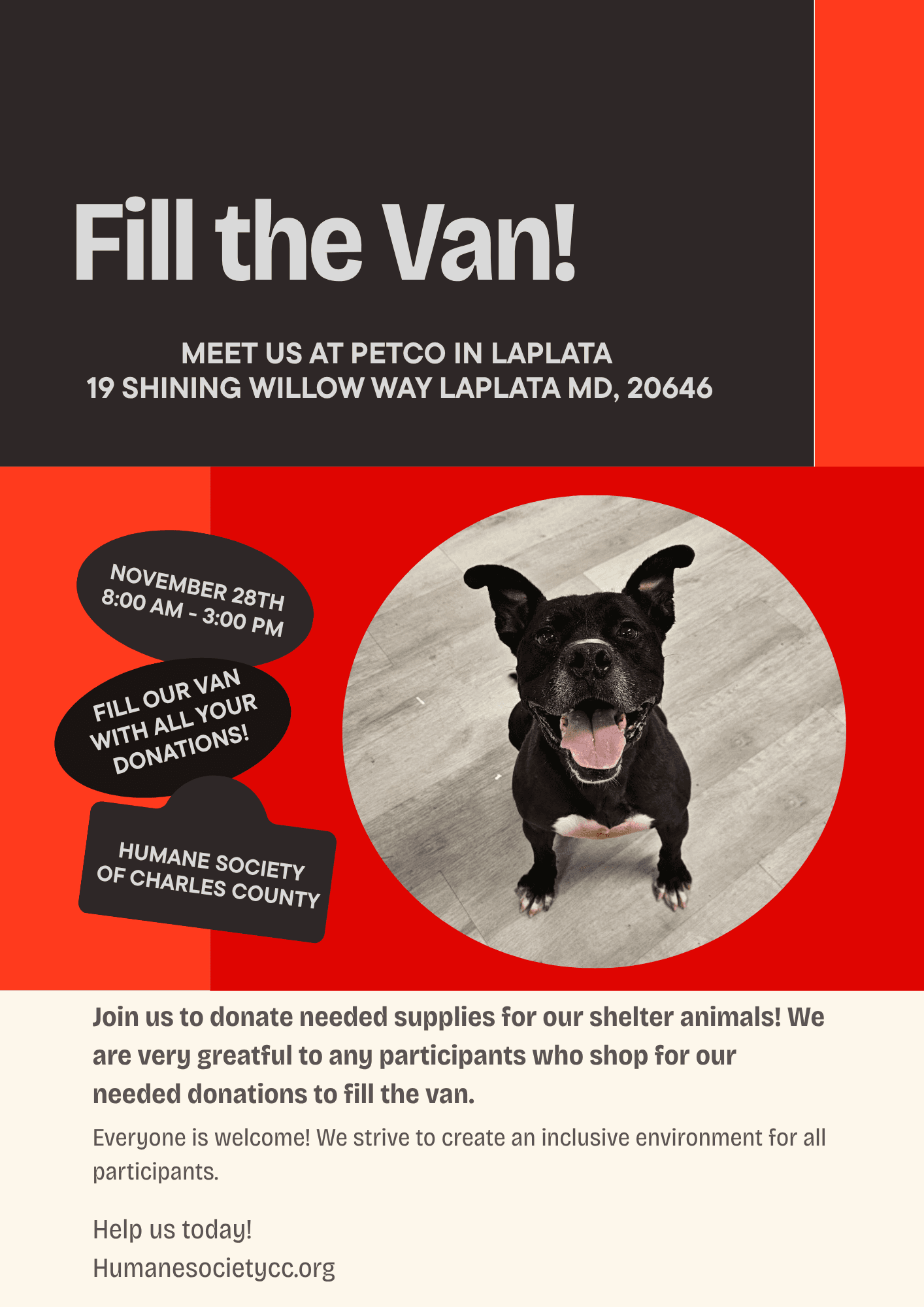 Humane Society of Charles County annual Holiday Craft Fair. Please join us at Thomas Stone High School Sunday, December 7, 2025.
